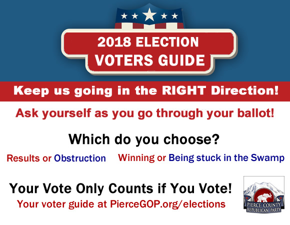 When you get your ballot, please go to this link for Our party’s official Voters Guide to keep us going in the RIGHT Direction! The Guide includes Candidates, Judicial Races and Ballot Issues: State Initiatives and Pierce County Charter Amendments. Match it up with your Ballot to vote with confidence!